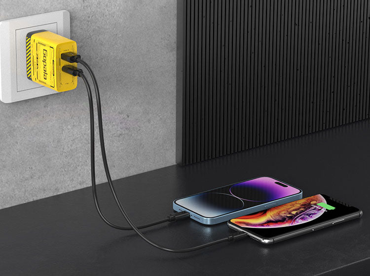 With USB-C and USB-A ports, you can now charge two devices simultaneously without compromising on speed. Whether it's your iPhone, iPad, or any other compatible device, our charger has got you covered.